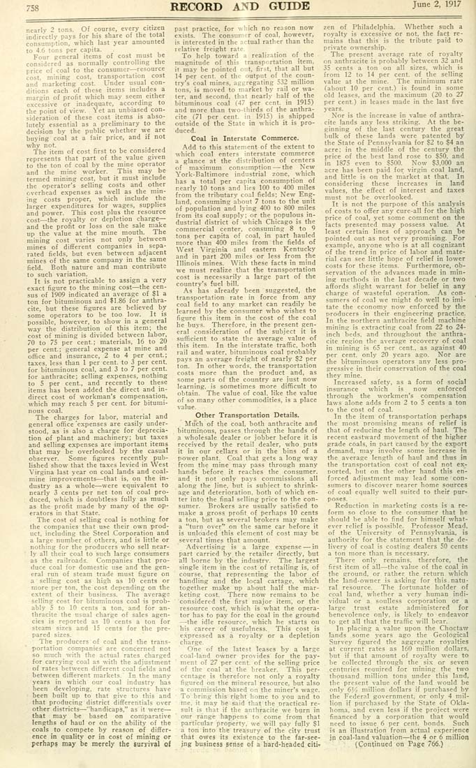 in mind that the price for mining a ton of coal costs only from 38 cents co 74 cents. Of courad tho miniug