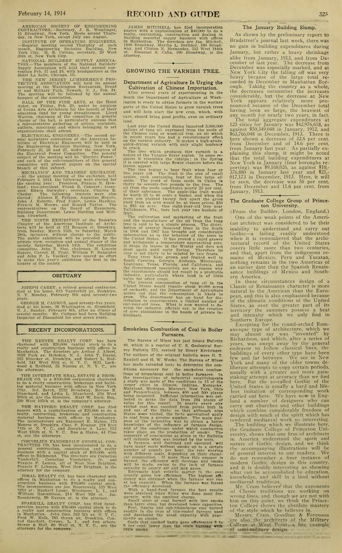 [v. 93, no. 2396: Articles]: February 14, 1914, p. 325