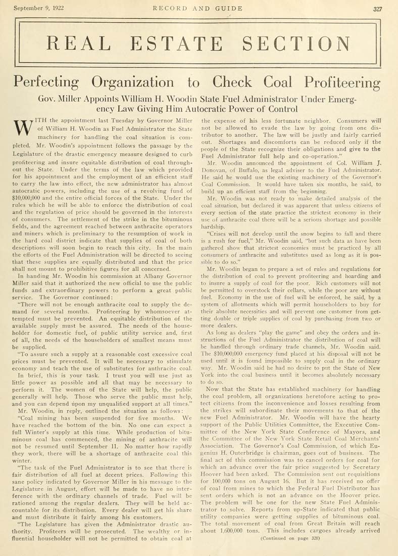 For State Coal Administrator Official to Be Appointed by Gov. Miller Will Regulate Distribution, Use, Price