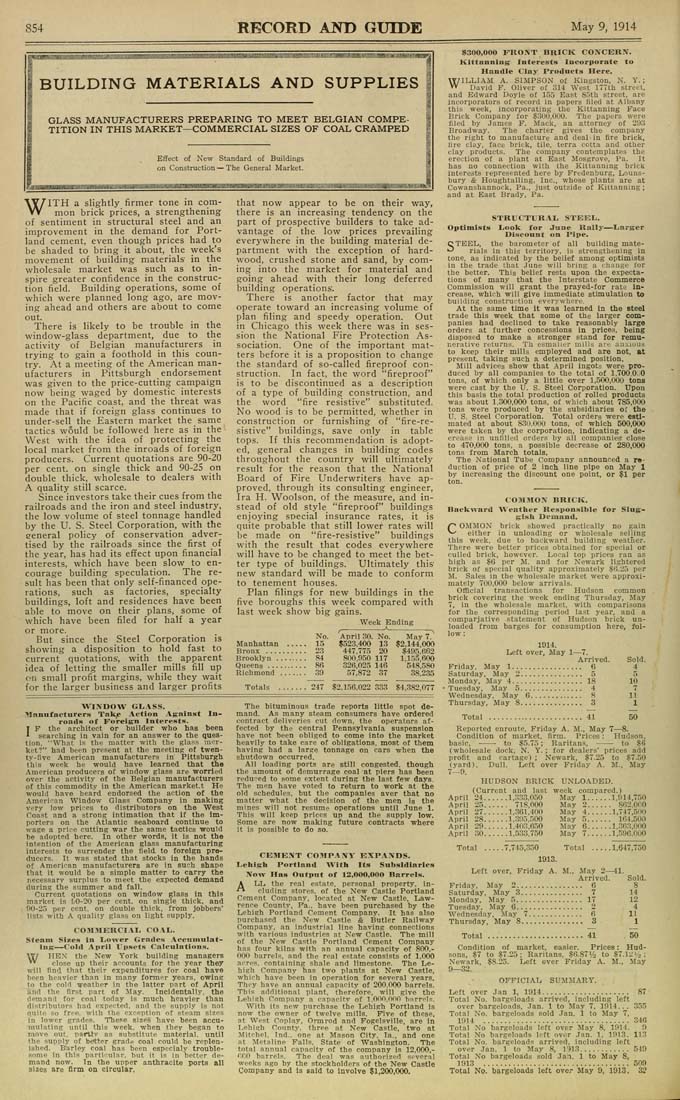 . The domestic exchanges show an enlarged volume of trade. The activity in orders for coal and iron continue