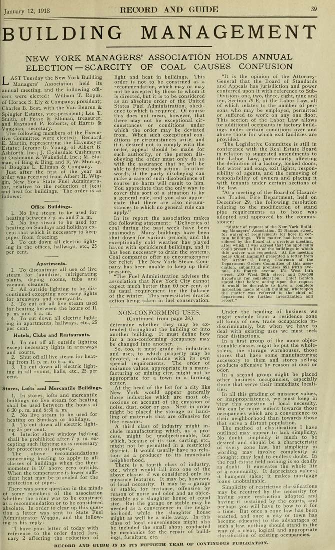 ANNUAL ELECTION —SCARCITY OF COAL CAUSES CONFUSION LAST Tuesday the New York Building Managers