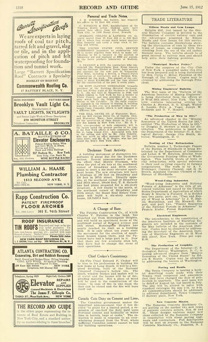 1318 RECORD AND GUIDE June 15, 1912 We are experts in laying roofs of coal tar pitch, tarred felt