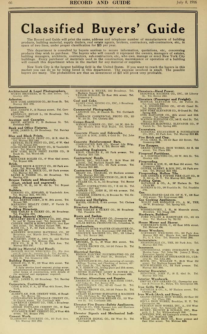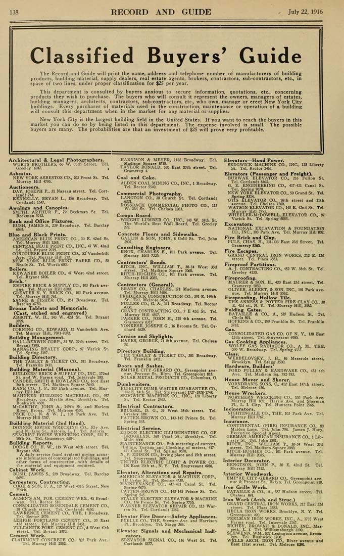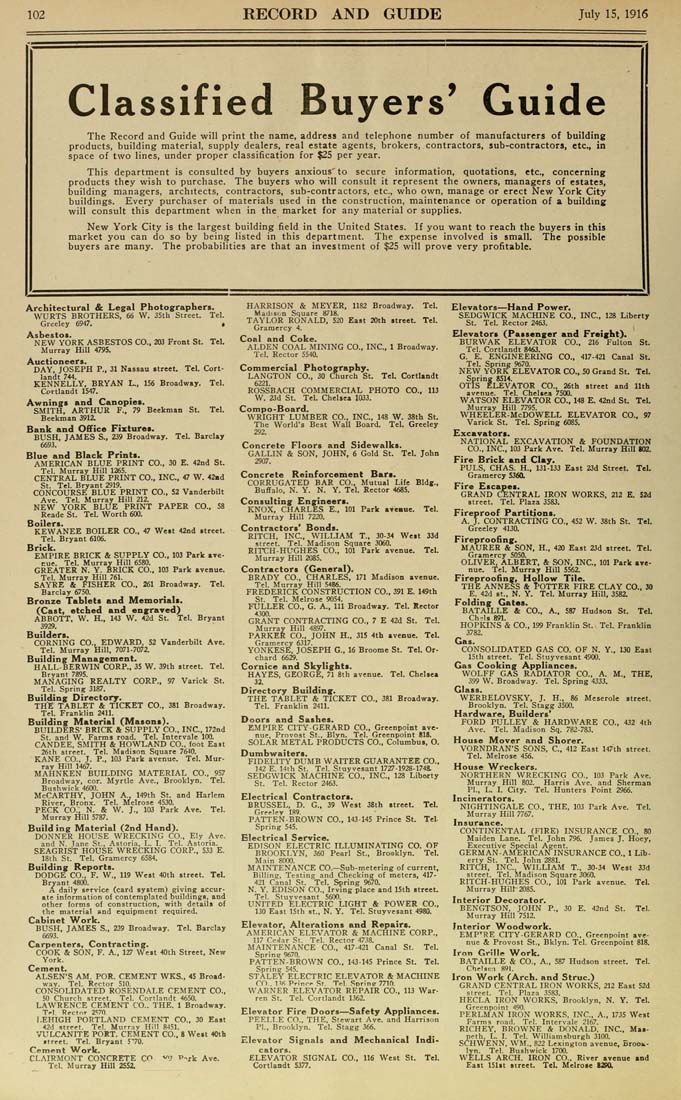 East 20th street. Tel. Gramercy 4. Coal and Coke. ALDEN COAL MINING CO., INC., 1 Broadway. Tel. Rector