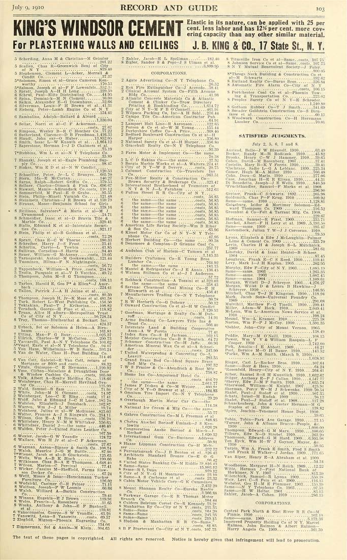 . Mining, Docks and Water Front Improvements, Building Construction, Sewerage and Disposal Works, Machinery