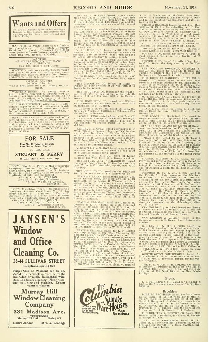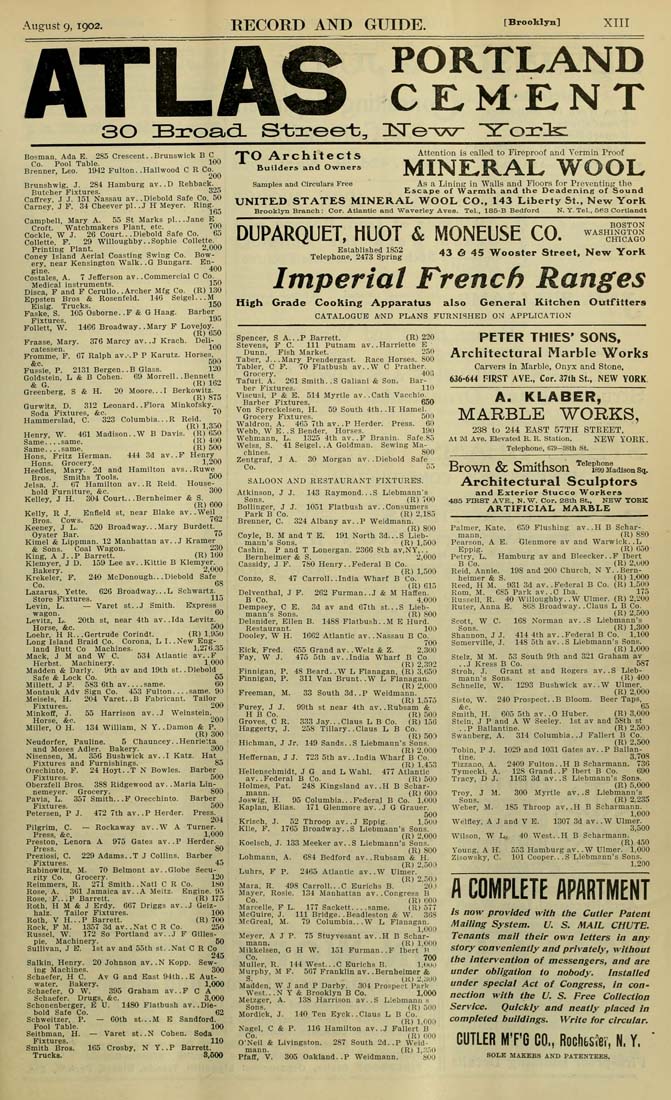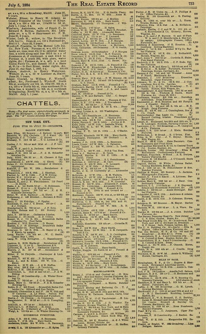Broadway ....Julia E, Coale, 500 Dahm, F, H. 2013 3d av....F. & M. Schaefer brewing Co. 600 Daly, Ellen