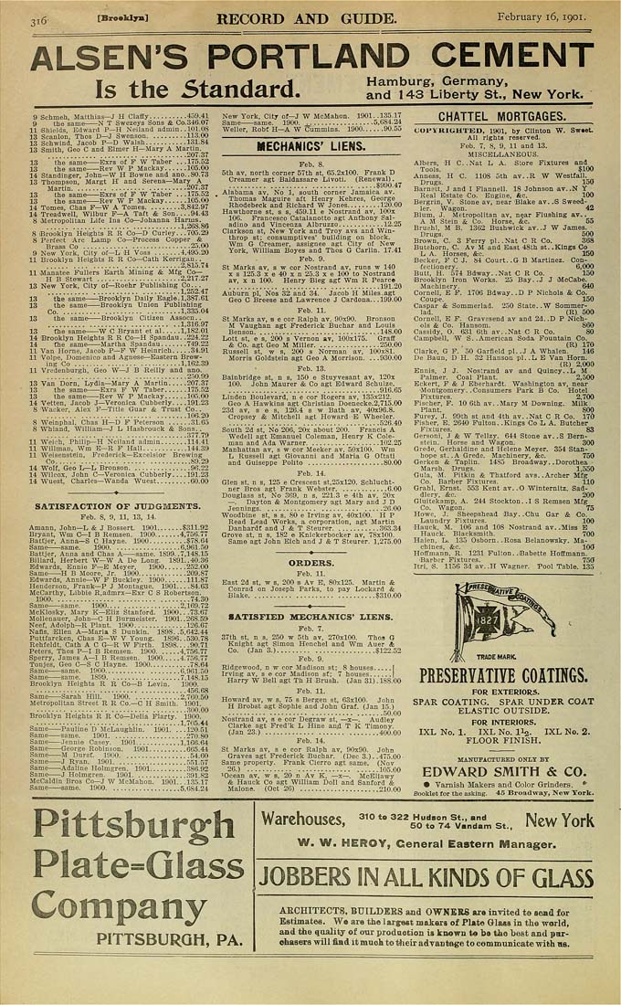 . Division av., cor. 1st st___Detmold & Cox. 350 tons of Coal in DistiUery. Lambin, Anton. 17 Flatbush av