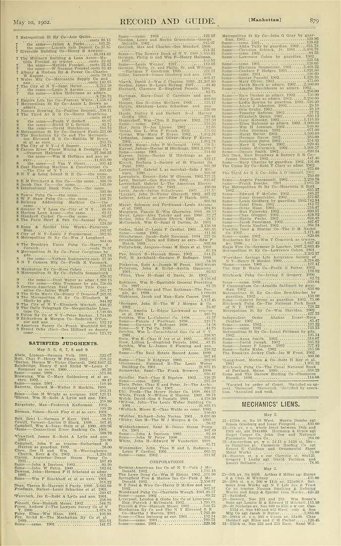 ,873.40 n Del'a'ware Mining. Milling and Mfg Co- First Nat Bank ot Rondout... .1,020.0.1 9 Rudolph Building