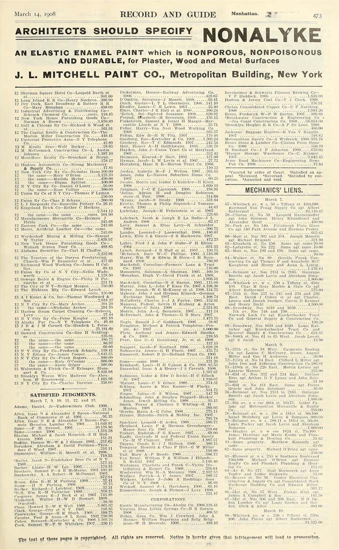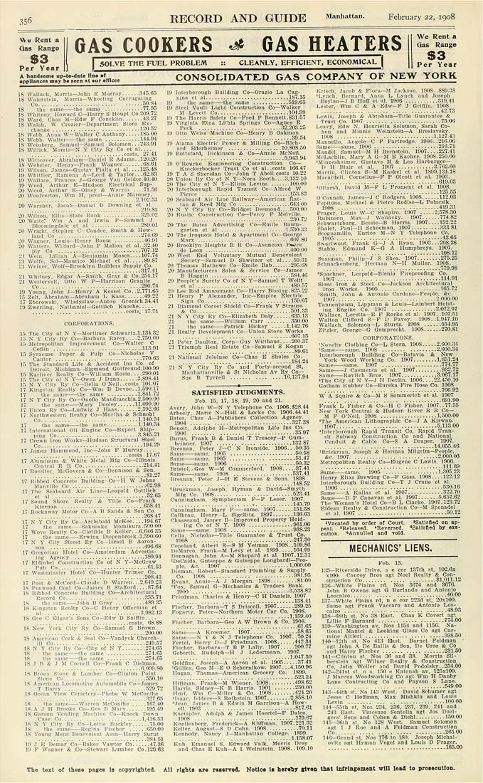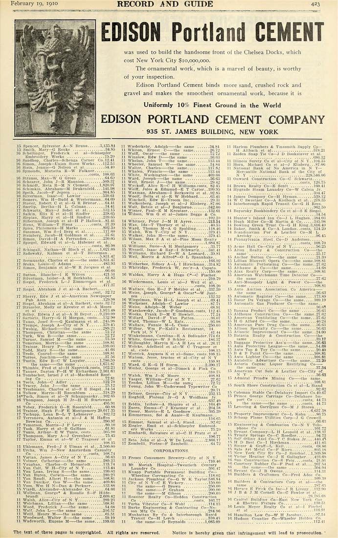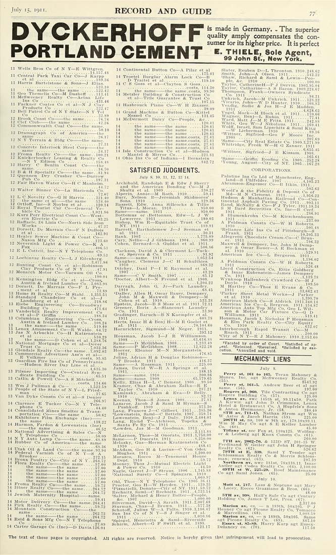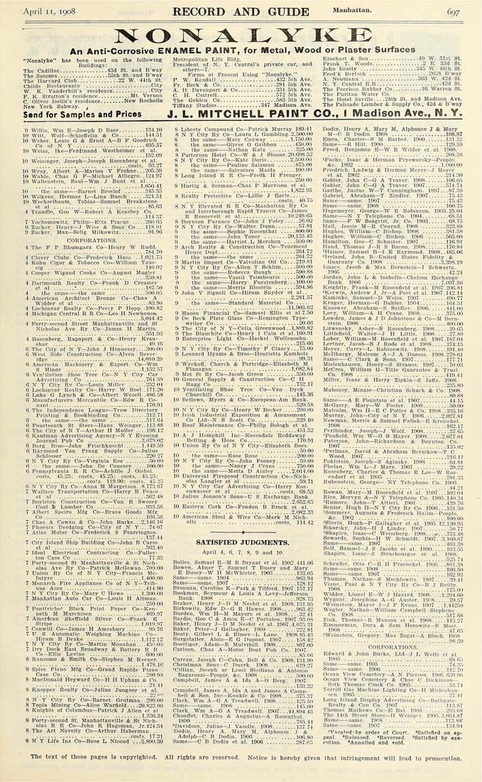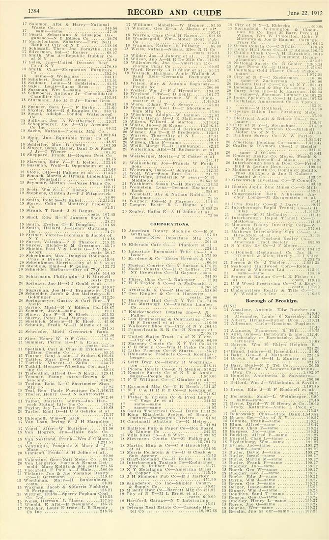 , Dunlap Co^Coal & Iron National Bank of City of N Y ...............................1,066.92 , 21 Purssell