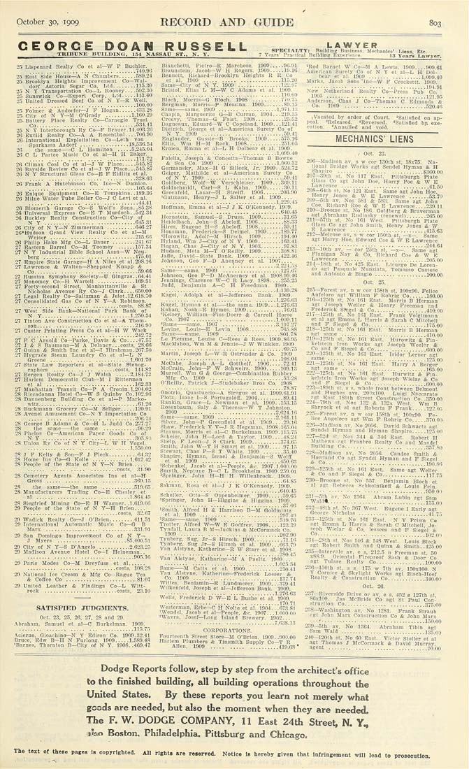 41 Marrin. Chas C & Waldo S Godw'i'n— C L Doran: 1911....... 417 41 Mining Supply Co—R A Berger et al